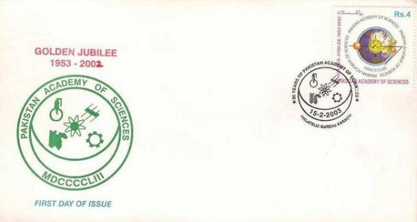 15فروری 2003ء کو پاکستان اکیڈمی آف سائنسز کی گولڈن جوبلی کے موقع پر پاکستان کے محکمہ ڈاک نے ایک یادگاری ڈاک ٹکٹ جاری کیا جس کی مالیت چار روپے تھی۔ اس ڈاک ٹکٹ پراس اکیڈمی کا لوگو بنا تھا اور انگریزی میں GOLDEN JUBILEE 1953-2002 اور PAKISTAN ACADEMY OF SCIENCES کے الفاظ تحریر کیے گئے تھے۔ اس ڈاک ٹکٹ کا ڈیزائن پاکستان اکیڈمی آف سائنسز نے فراہم کیا تھا۔