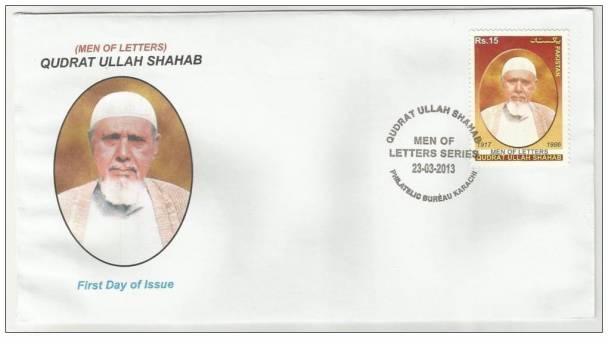 23مارچ2013ء کو پاکستان کے محکمہ ڈاک نے پاکستان کے عظیم اہل قلم کو خراج تحسین پیش کرنے کے لیے یادگاری ڈاک ٹکٹوں کی سیریز کا ایک ڈاک ٹکٹ نامورادیب اور سول سرونٹ قدرت اللہ شہاب کی یاد میں جاری کیا۔ اس ڈاک ٹکٹ پرقدرت اللہ شہاب کا ایک خوب صورت پورٹریٹ بنا تھا ۔ پندرہ روپے مالیت کا یہ ڈاک ٹکٹ عادل صلاح الدین نے ڈیزائن کیا تھااوراس پر انگریزی میں MEN OF LETTERS اورQUDRAT ULLAH SHAHAB 1917 1986 کے الفاظ تحریر تھے۔