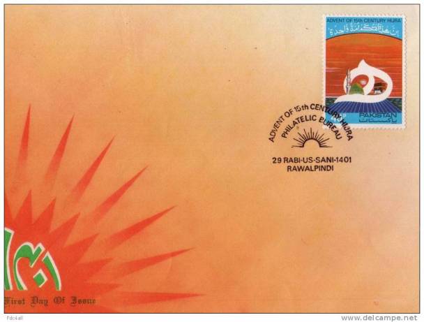 10 نومبر 1980ء مطابق یکم محرم الحرام 1401ھ کو نئی اسلامی صدی کے آغاز پر پاکستان کے محکمہ ڈاک نے تین خصوصی ڈاک ٹکٹ اور سووینیر شیٹ جاری کیے تھے ۔ اس سلسلے کا چوتھا ڈاک ٹکٹ 7مارچ 1981ء کو جاری کیا گیا جس کی منظوری آرگنائزیشن آف اسلامک کنٹریز (او آئی سی) نے دی تھی ۔اس خصوصی ڈاک ٹکٹ کی مالیت 40 پیسے تھی اور اس پر انگریزی میں Advent of 15th Century Hijra اور عربی میں قران پاک کی ایک آیت : ’’ان ھٰذا امتکم امۃ واحدۃ ‘‘ درج کی گئی تھی۔ اس ڈاک ٹکٹ پر مسجد نبوی کا گنبد بھی بنا تھا اور اس ڈاک ٹکٹ کا ڈیزائن عادل صلاح الدین نے تیارکیا تھا۔