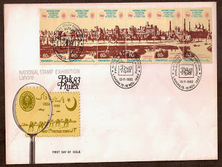 13نومبر1983ء کو لاہورمیں ڈاک ٹکٹوں کی ایک چھ روزہ نمائش PAK PHILEX' 83کا آغاز ہوا۔ اس سلسلے میں پاکستان کے محکمہ ڈاک نے چھ ڈاک ٹکٹوں کا ایک سیٹ جاری کیا جو آپس میں جڑے ہوئے تھے اور ان پر قدیم لاہور کی 1852ء کی ایک پینٹنگ کا عکس چھاپا گیا تھا ۔ یہ پینٹنگ لاہور کے شاہی قلعہ اور بادشاہی مسجد کے عکس پر مشتمل تھی۔ ان تمام ڈاک ٹکٹو ں کی مالیت 60،60پیسے تھی اور ان پر NATIONAL STAMP EXHIBITION Lahore Museum 13-18 Nov. 1983 کے الفاظ طبع کیے گئے تھے۔یہ خوب صورت سیٹ جسے پاکستان سیکیورٹی کارپوریشن کی ڈیزائنر سلطانہ جبیں نے ڈیزائن کیا تھا، ڈاک ٹکٹ جمع کرنے والے شائقین میں بہت پسند کیا گیا ۔