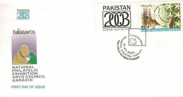 31جنوری 2003ء کو کراچی میں آرٹس کونسل کے مقام پر ڈاک ٹکٹوں کی قومی نمائش کا آغاز ہوا۔ اس موقع پر پاکستان کے محکمہ ڈاک نے ایک یادگاری ڈاک ٹکٹ شائع کیا جس پر پاکستان کے قومی پھول گل یاسمین کی تصویر بنی تھی اور انگریزی میں PAKISTAN NATIONAL PHILATELIC EXHIBITIONکے الفاظ تحریر تھے۔ اس ڈاک ٹکٹ کا ڈیزائن پاکستان سیکیورٹی پرنٹنگ پیپرز کے مسعود الرحمٰن نے تیار کیا تھا۔