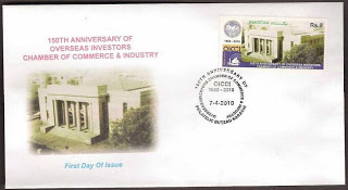 7اپریل2010ء کو اوورسیز انویسٹرزچیمبر آف کامرس اینڈ انڈسٹری کی ایک سو پچاس ویں سال گرہ کے موقع پر پاکستان کے محکمہ ڈاک نے آٹھ روپے مالیت کاایک یادگاری ڈاک ٹکٹ جاری کیا۔ اس ڈاک ٹکٹ پراوورسیز انویسٹرزچیمبر آف کامرس اینڈ انڈسٹری کا لوگو اور اس کی خوبصورت عمارت کی تصویر بنی تھی اور انگریزی میں 150th Anniversary of the Overseas Investors Chamber of Commerce & Industry 1860-2010کے الفاظ تحریر تھے۔ اس ڈاک ٹکٹ کا ڈیزائن نوید اعوان نے تیارکیا تھا۔