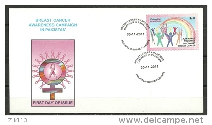 30نومبر 2011ء کو پاکستان کے محکمہ ڈاک نے بریسٹ کینسرکے مرض سے آگہی کے لیے چلنے والی مہم اور اس مرض کے خلاف جدوجہد اور عوامی شعور کی بیداری کے موضوع پر آٹھ روپے مالیت کا ایک یادگاری ٹکٹ جاری کیا جس پربریسٹ کینسرکا نشان بنا تھااور انگریزی میںJOIN HANDS TOGETHER TO COMBAT BREAST CANCERکے الفاظ تحریر تھے۔ اس ڈاک ٹکٹ کا ڈیزائن عادل صلاح الدین نے تیار کیا تھا۔