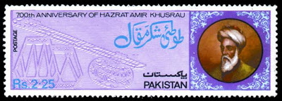 24 اکتوبر 1975ء کو پاکستان کے محکمہ ڈاک نے 20 پیسے اور سوا دو روپے مالیت کے دو خوبصورت ڈاک ٹکٹوں کا ایک سیٹ جاری کیا جن کا ڈیزائن عادل صلاح الدین نے تیار کیا تھا۔ ان ڈاک ٹکٹوں پر حضرت امیرخسرو کی تصویر کے ساتھ اردو میں ’’ طوطی شکر مقال‘‘ اور انگریزی میں “700th Anniversary of Hazrat Amir Khusrau” کے الفاظ طبع کیے گئے تھے۔