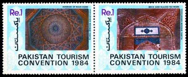 5 نومبر 1984ء سے 8 نومبر 1984ء کے دوران کراچی میں چوتھا پاکستان ٹورازم کنونشن منعقد ہوا جس کا مقصدپاکستان میں سیاحت کو فروغ دینا تھا۔ اس موقع پر پاکستان کے محکمہ ڈاک نے پانچ یادگاری ڈا ک ٹکٹوں کا ایک سیٹ جاری کیا جن پر شاہجہانی مسجد ٹھٹھہ کے مختلف گوشوں کی تصاویر مع کیپشن چھپی تھیں اور ان پر PAKISTAN TOURISM CONVENTION 1984 کے الفاظ تحریر تھے۔ ان ڈاک ٹکٹوں میں سے ہر ایک کی مالیت ایک روپیہ تھی ۔