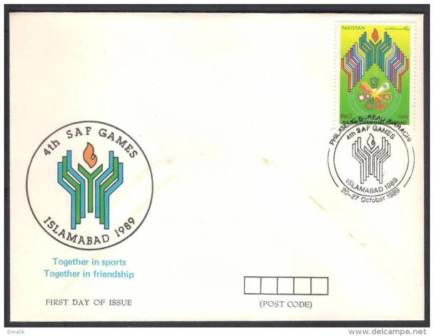 20اکتوبر1989ء کو پاکستان کے محکمہ ڈاک نے اسلام آباد میں چوتھے سیف گیمزکے انعقاد پر ایک یادگاری ڈاک ٹکٹ جاری کیا جس پر سیف گیمز کا لوگو اور اس میں شرکت کرنے والے ممالک کے پرچم بنے تھے اور انگریزی میں 4th SAF GAMES ISLAMABADکے الفاظ تحریر تھے ۔ ایک روپے مالیت کے اس یادگاری ڈاک ٹکٹ کا ڈیزائن جناب عادل صلاح الدین نے تیار کیا تھا۔
