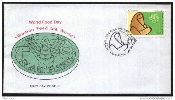 نومبر 1979ء میں عالمی ادارہ خوراک و زراعت نے فیصلہ کیا تھا کہ ہر سال 16اکتوبر کو دنیا بھر میں عالمی یوم خوراک منایا جایا کرے گا۔ چنانچہ 16 اکتوبر 1998ء کوپاکستان کے محکمہ ڈاک نے اس دن کی مناسبت سے چھ روپے مالیت کا ایک یادگاری ڈاک ٹکٹ جاری کیا جس پر عالمی ادارہ خوراک و زراعت کا لوگو اوربچے کو دودھ پلاتی ہوئی عورت کی تصویر بنی تھی اور WORLD FOOD DAYاورWOMEN FEED THE WORLD کے الفاظ تحریر کیے گئے تھے۔ یہ ڈاک ٹکٹ پاکستان سیکیورٹی پرنٹنگ پریس کی ڈیزائنر نرگس منیرنے ڈیزائن کیا تھا۔