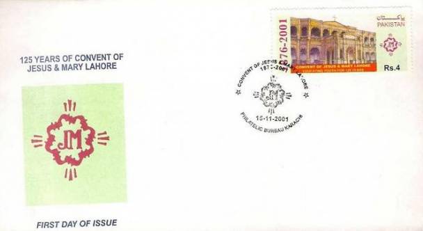 28اکتوبر 2001ء کو پاکستان کے محکمہ ڈاک نے کانونٹ آف جیسس اینڈ میری، لاہورکے قیام کی ایک سو پچیسویں سالگرہ کے موقع پر چارروپے مالیت کا ایک ڈاک ٹکٹ جاری کیا۔ اس ڈاک ٹکٹ پر کالج کی عمارت کی تصویر اور کالج کا لوگو بنا تھااور انگریزی میں 1876-2001 CONVENT OF JESUS AND MARRY, LAHORE EDUCATING YOUTH FOR 125 YEARS کے الفاظ تحریر تھے۔ اس ڈاک ٹکٹ کا ڈیزائن مسز رخسانہ ڈیوڈنے تیار کیا تھا۔