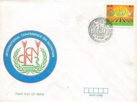 5دسمبر1992 ء کو روم میں عالمی غذائی کانفرنس کا انعقادہوا جس کا اہتمام عالمی ادارہ صحت اور فوڈ اینڈ ایگری کلچرآرگنائزیشن نے مشترکہ طور پر کیا تھا۔ اس موقع پر پاکستان کے محکمہ ڈاک نے سات روپے مالیت کا ایک یادگاری ٹکٹ جاری کیا جس پر عالمی ادارہ صحت، عالمی غذائی کانفرنس اور فوڈ اینڈ ایگری کلچر آرگنائزیشن کے لوگو چھپے تھے اور انگریزی میں INTERNATIONAL CONFERENCE ON NUTRITION کے الفاظ تحریر کیے گئے تھے۔ اس ڈاک ٹکٹ کا ڈیزائن عادل صلاح الدین نے تیار کیا تھا ۔