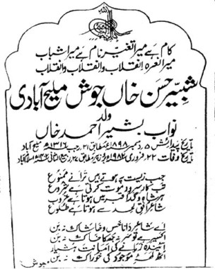 ٭22 فروری 1982ء کو جوش ملیح آبادی نے اسلام آباد میں وفات پائی اور وہیں آسودۂ خاک ہوئے۔